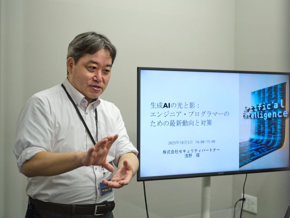 浅野代表のAIセキュリティに関する知見がMol.tの入居企業に新たな学びをもたらし、コミュニティ全体のセキュリティ意識向上につながると感じています。浅野代表が目標とされている100社の支援、100名の人材育成を後押ししていきたいですね。Mol.tの連携ワークスペースでの研修や、配信スタジオを活用したオンライン講座の展開などもサポートしていけたらと思っています。